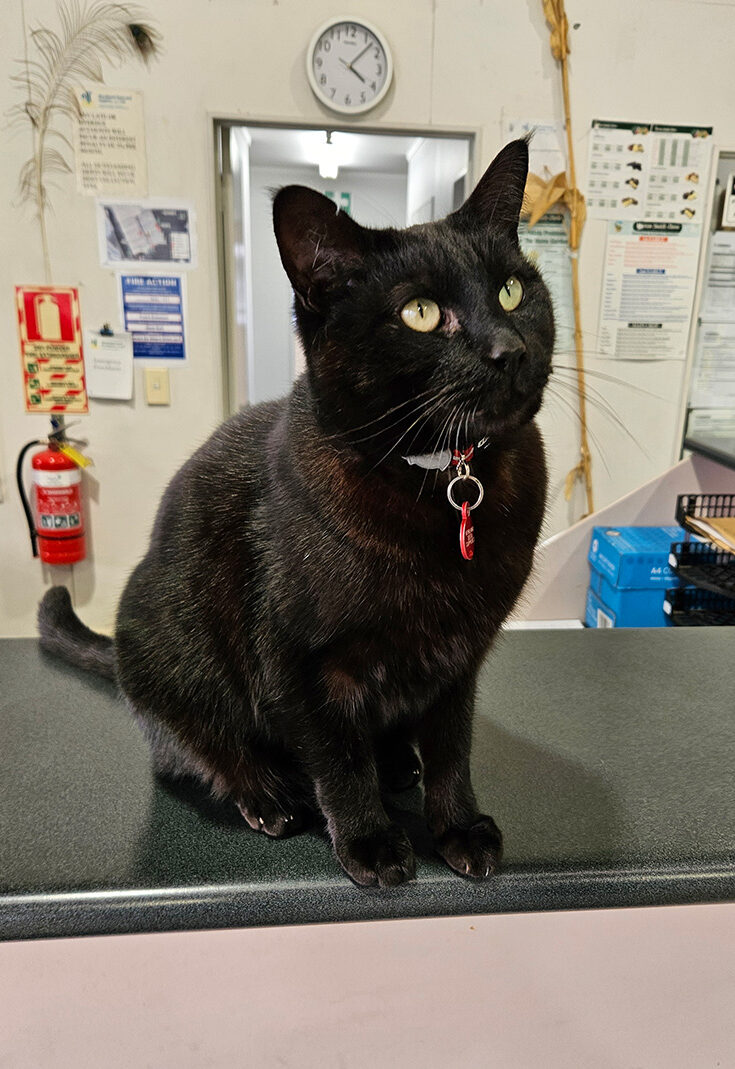 Panther does a good job at keeping rodents and birds under control, during the day he enjoys being in the shop welcoming customers and accepting many pats and treats. At night he stays out the back to sleep and take care of the shop.